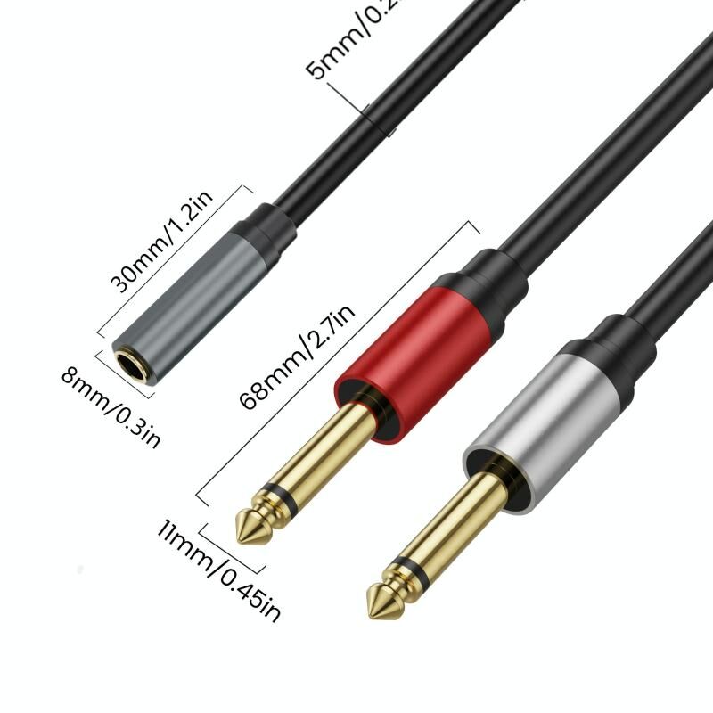 4. Το στερεοφωνικό καλώδιο 3,5mm σε μονοφωνικό 6,35mm δεν έχει έξοδο ακουστικών. Συνδυάζει κυρίως τις δύο μονοφωνικές εξόδους 6,35mm σε ένα στερεοφωνικό σήμα, και το στερεοφωνικό βύσμα 3,5 mm για τα ακουστικά σας είναι από διπλό προσαρμογέα TS σε TRS.