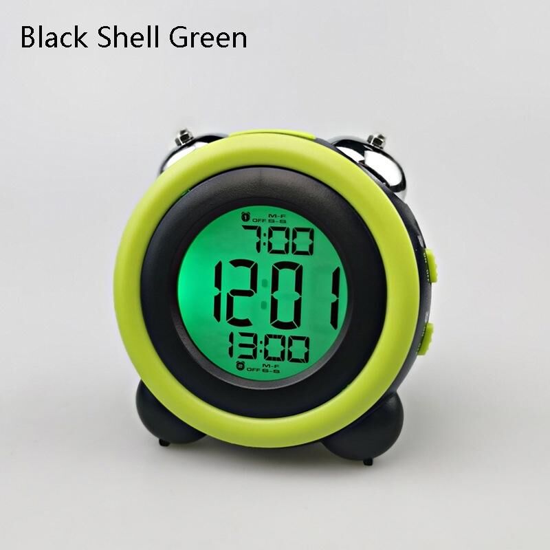 0705 Big Volume Simple Three-Dimensional LED Alarm Clock Mute Luminous Electronic Clock(Black Shell Green)