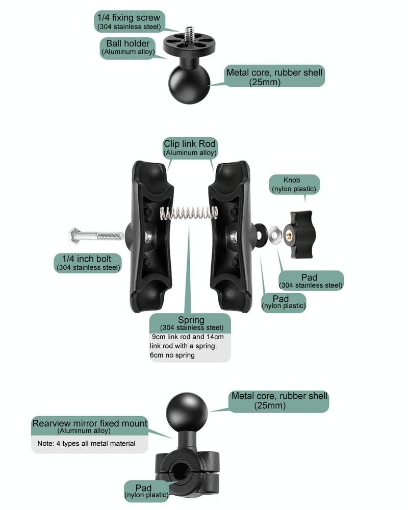 4. 25mm ball head suitable for USA RAM, MWUPP, SMNU etc. motorcycles.