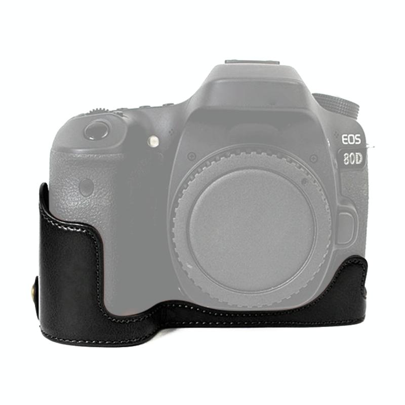 1/4 inch Thread PU Leather Camera Half Case Base for Canon EOS 80D / 70D(Black)