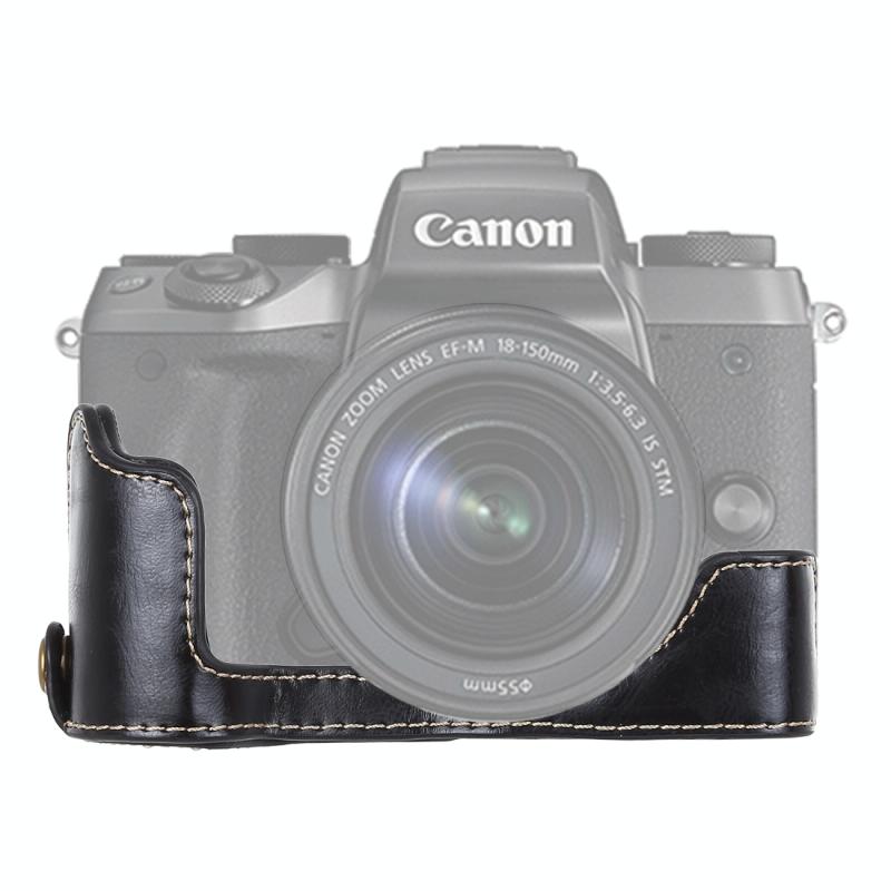 1/4 inch Thread PU Leather Camera Half Case Base for Canon EOS M5(Black)