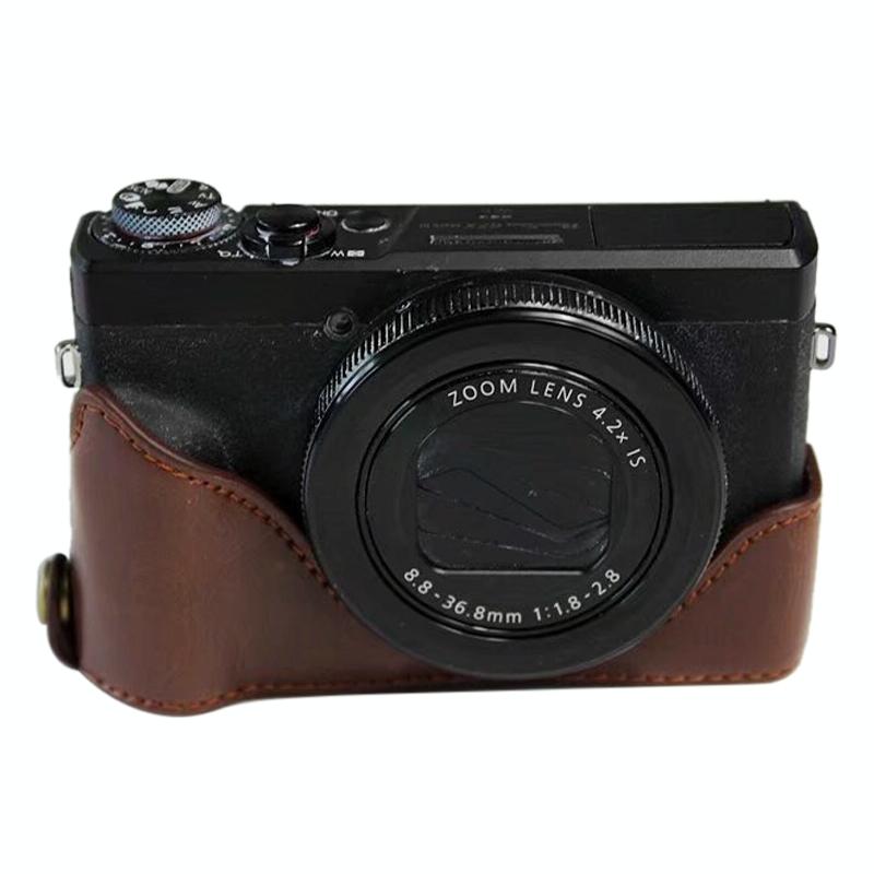 1/4 inch Thread PU Leather Camera Half Case Base for Canon G7 X Mark III / G7 X3 (Coffee)