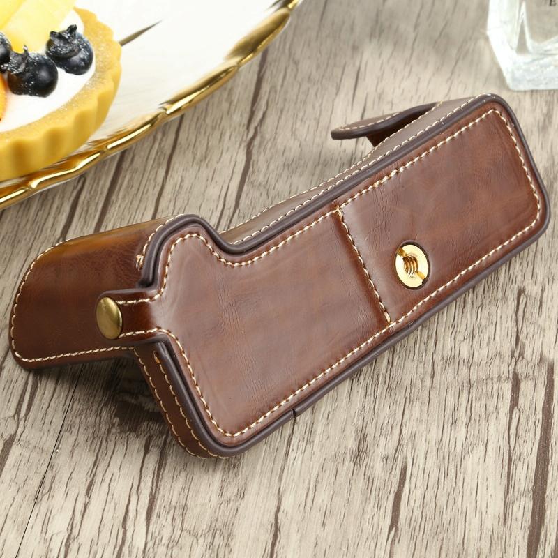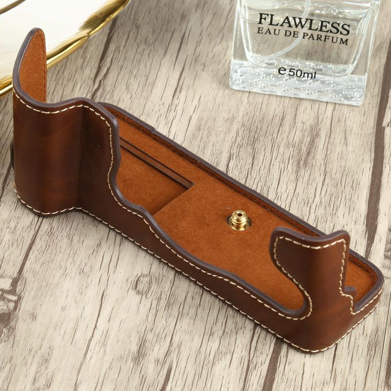 1/4 inch Thread PU Leather Camera Half Case Base for FUJIFILM X-T4 (Coffee)