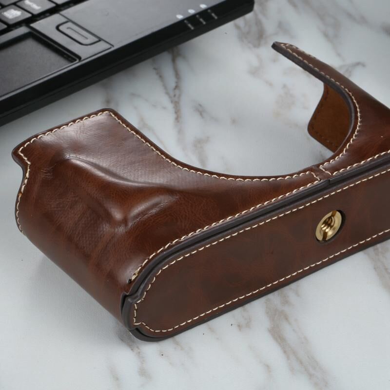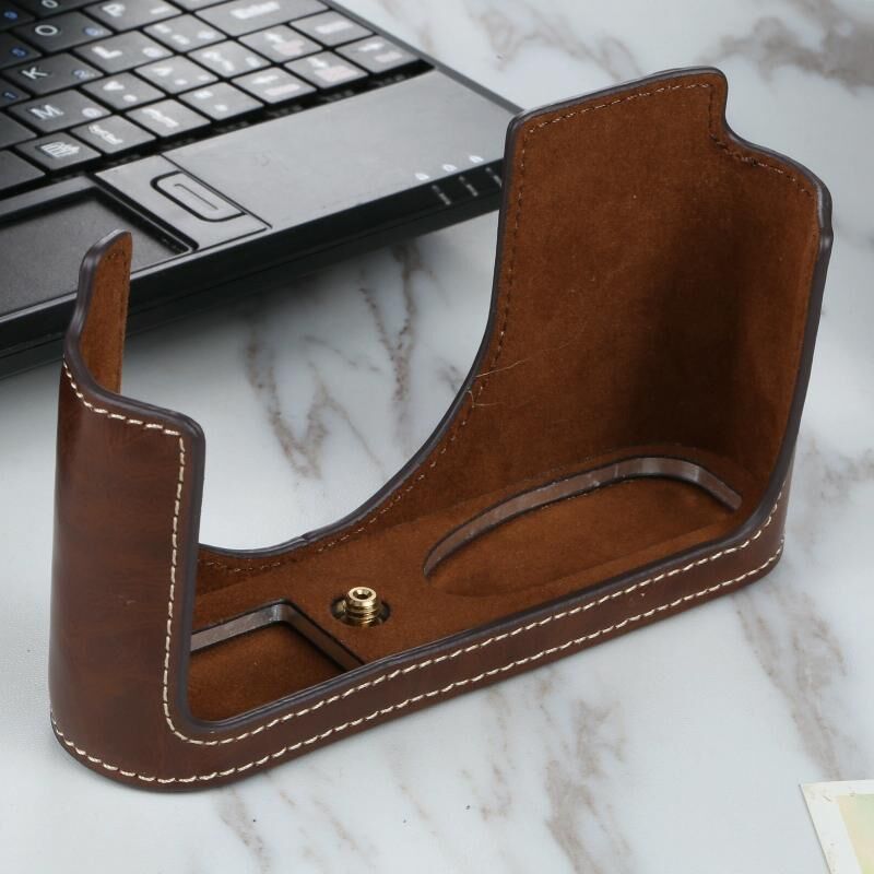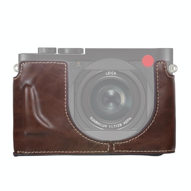 1/4 inch Thread PU Leather Camera Half Case Base for Leica Q2(Coffee)