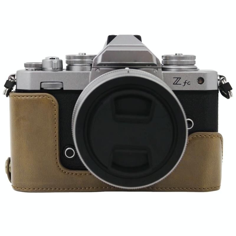 1/4 inch Thread PU Leather Camera Half Case Base for Nikon Z fc (Khaki)