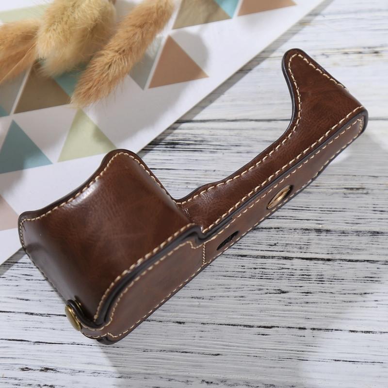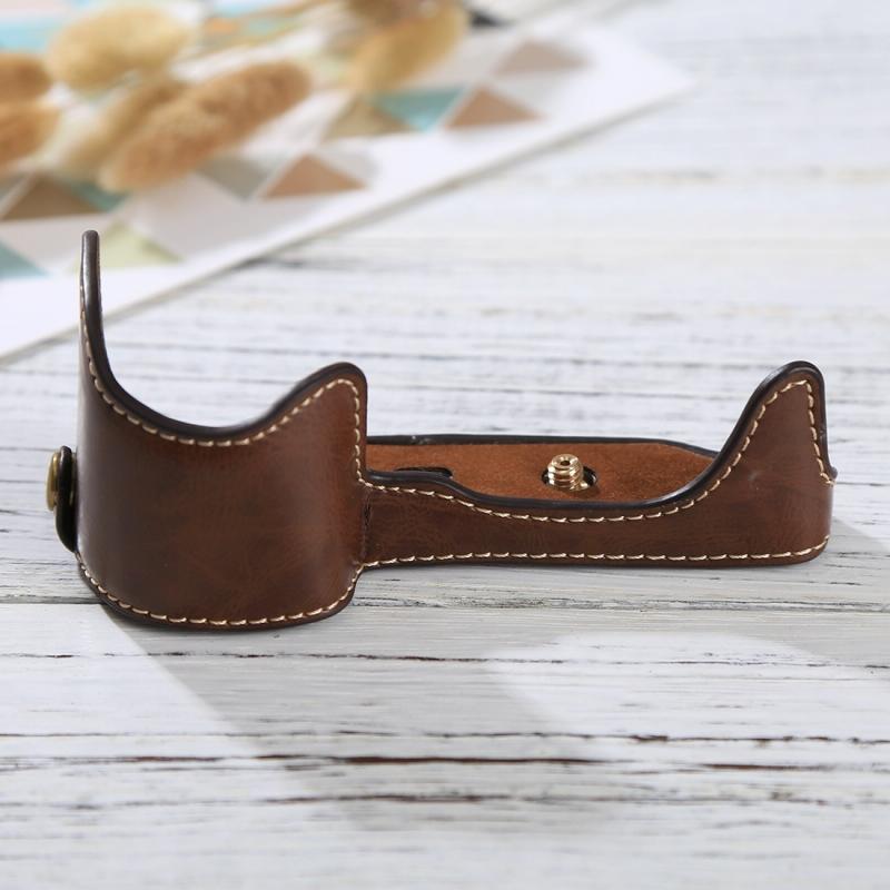 1/4 inch Thread PU Leather Camera Half Case Base for Sony Alpha 6100 / A6100(Coffee)