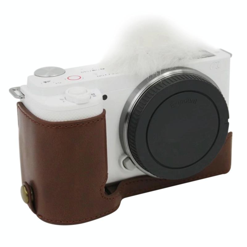 1/4 inch Thread PU Leather Camera Half Case Base for Sony ZV-E10 / ZV-E10L (Black)