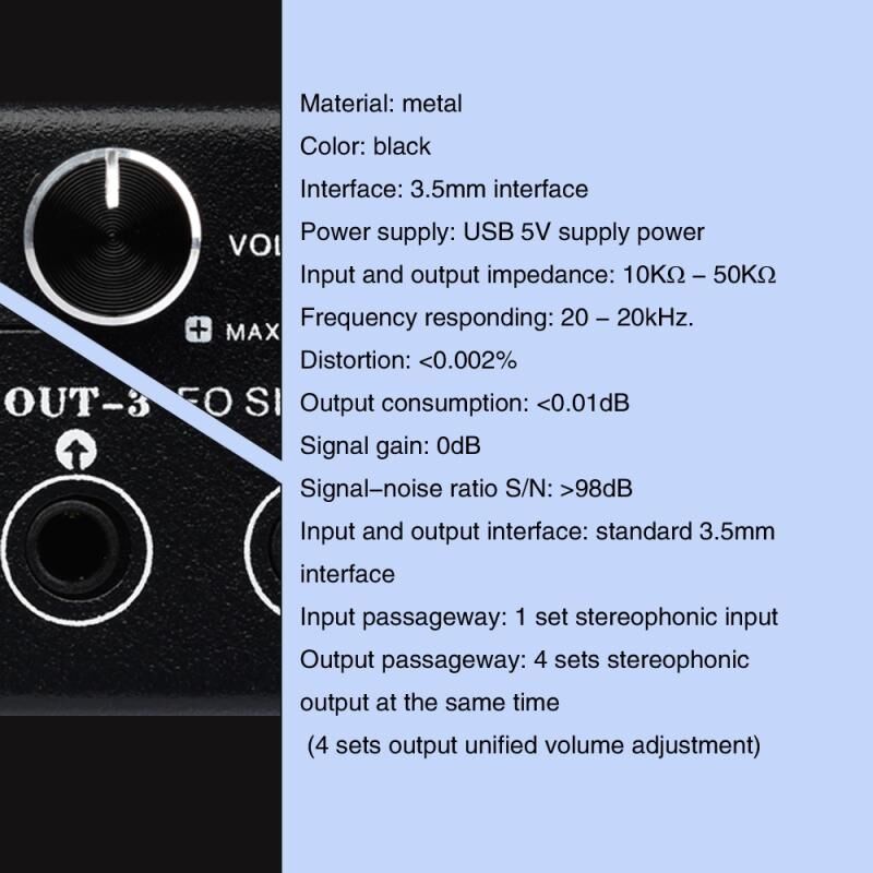 1. B064 1 είσοδος 4 εξόδων συσκευή διανομής ηχητικού σήματος 3.5mm x 1
