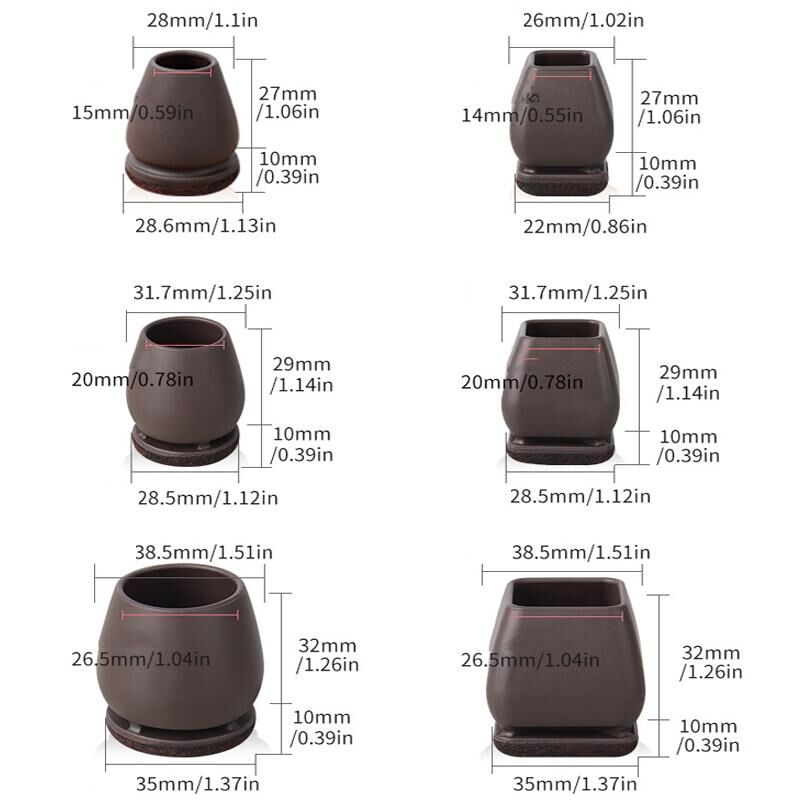 1 ίντσα 8pcs / σετ 15 βαθμού κλίσης τραπέζι και πόδια καρέκλας μονοκόμματο προστατευτικό κάλυμμα απορρόφησης κραδασμών για καρέκλες (τετράγωνο)