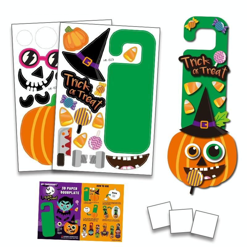 1 Sets Children Cartoon Halloween Decoration Door Hanging Stickers Holiday DIY Game Emoticons(Pumpkin)