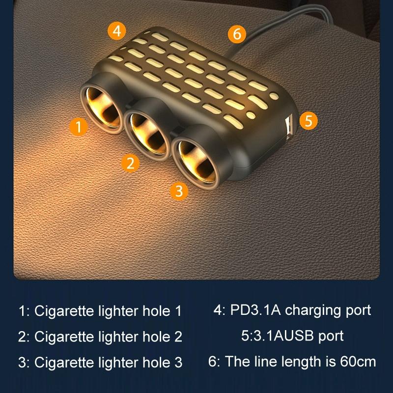 2. Υψηλή ισχύς 120W, τρεις θύρες αναπτήρα + επέκταση USB + διεπαφή PD, υποστηρίζει διάφορες ηλεκτρονικές συσκευές αυτοκινήτου της αγοράς