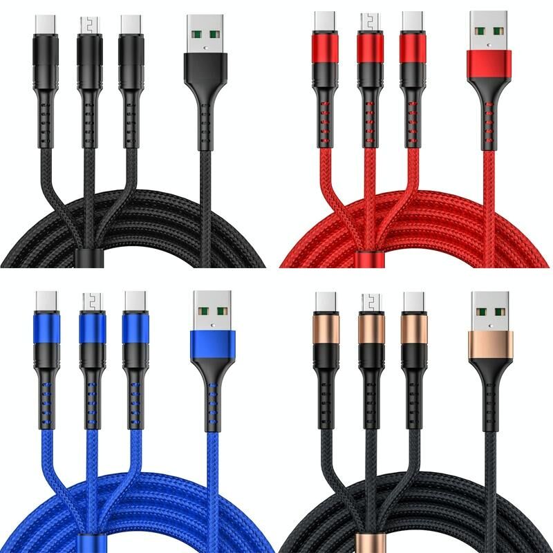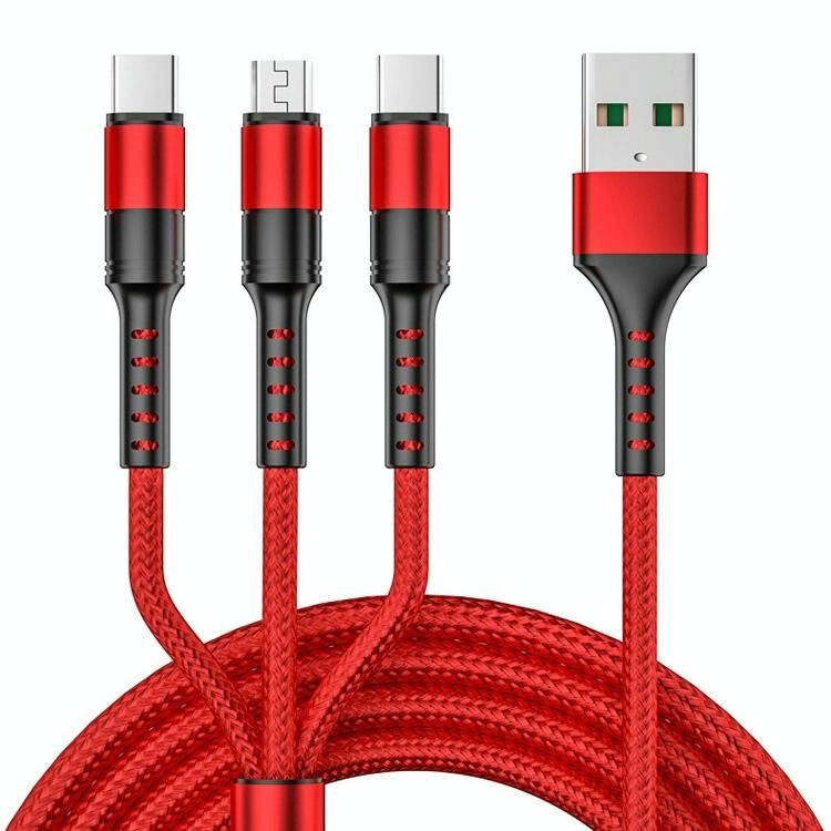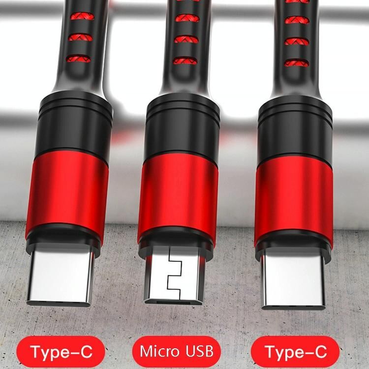 1.25m 3 In 1 USB to Dual Type-C + Micro USB Quick Charging Sync Data Cable, Output: 5A (Red)