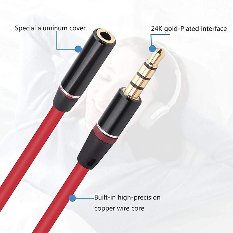 Καλώδιο ήχου Aux 1,2μ, βύσμα 3,5mm αρσενικό σε θηλυκό, συμβατό με τηλέφωνα, tablet, ακουστικά, MP3 player, στερεοφωνικά αυτοκινήτου/σπιτιού & άλλα (Κόκκινο)
