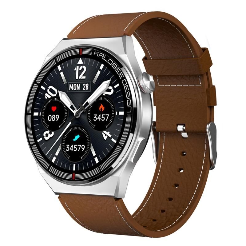 1.3 ιντσών δερμάτινη ζώνη IP68 αδιάβροχο Smart Watch Υποστήριξη Bluetooth Call (καφέ)