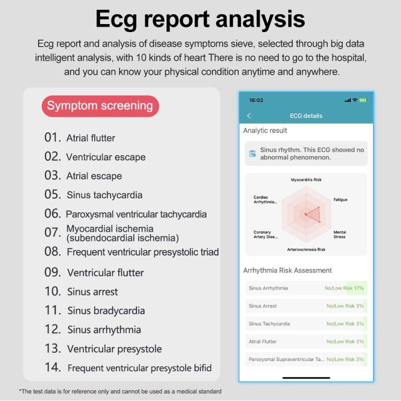Υποστηρίζει καρδιακό ρυθμό σε πραγματικό χρόνο: Ο καρδιακός ρυθμός ηρεμίας 30 έως 240 bpm μπορεί να ανιχνευθεί άμεσα, συνεχής παρακολούθηση 24 ωρών, καταγραφή της τιμής του καρδιακού ρυθμού κάθε λεπτό, προειδοποίηση εύρους καρδιακού ρυθμού
