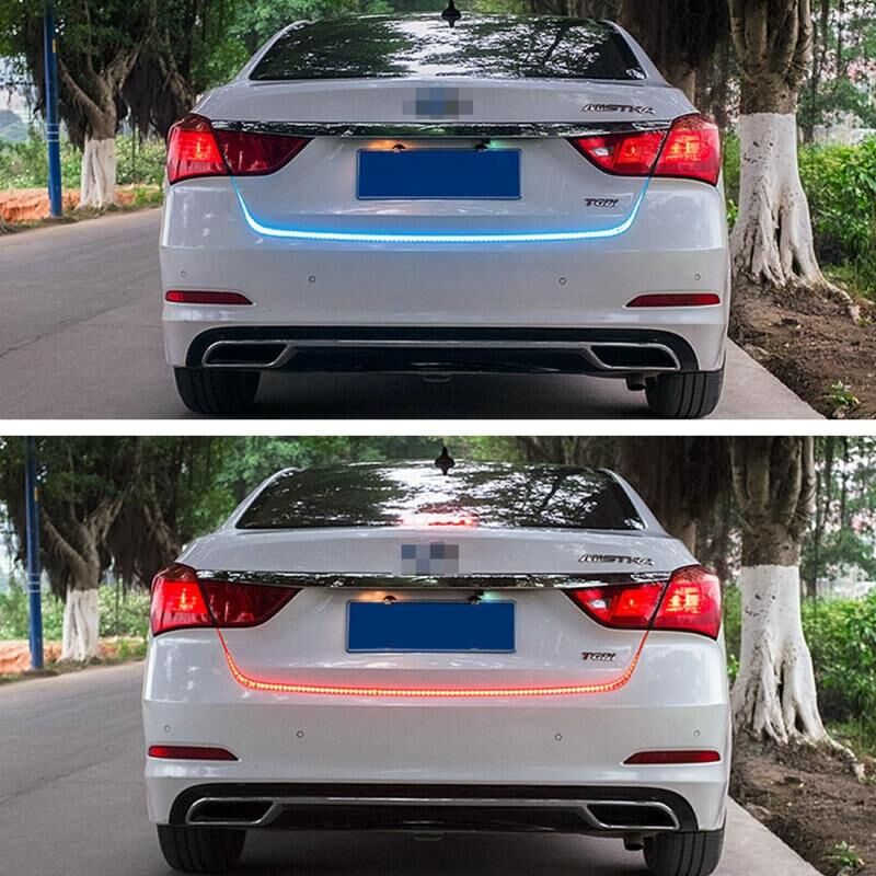 1.5m Car Auto Waterproof Universal Four Color Rear Flowing Light Tail Box Lights with Tail Light Controller, Ice Blue Light Driving Light, White Light Reversing Light, Red Light Brake Light, Yellow Light Turn Signal Light, LED Lamp Strip Tail Decoration