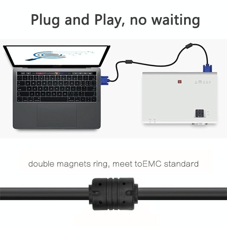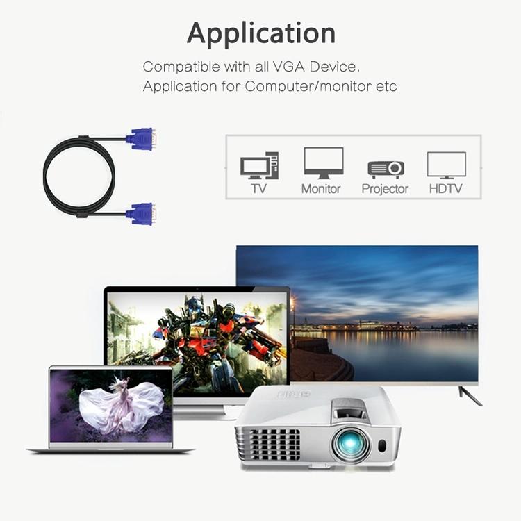3) This VGA Cable connects PC or laptop to the projector, LCD monitor, and other video display system through VGA connections.
