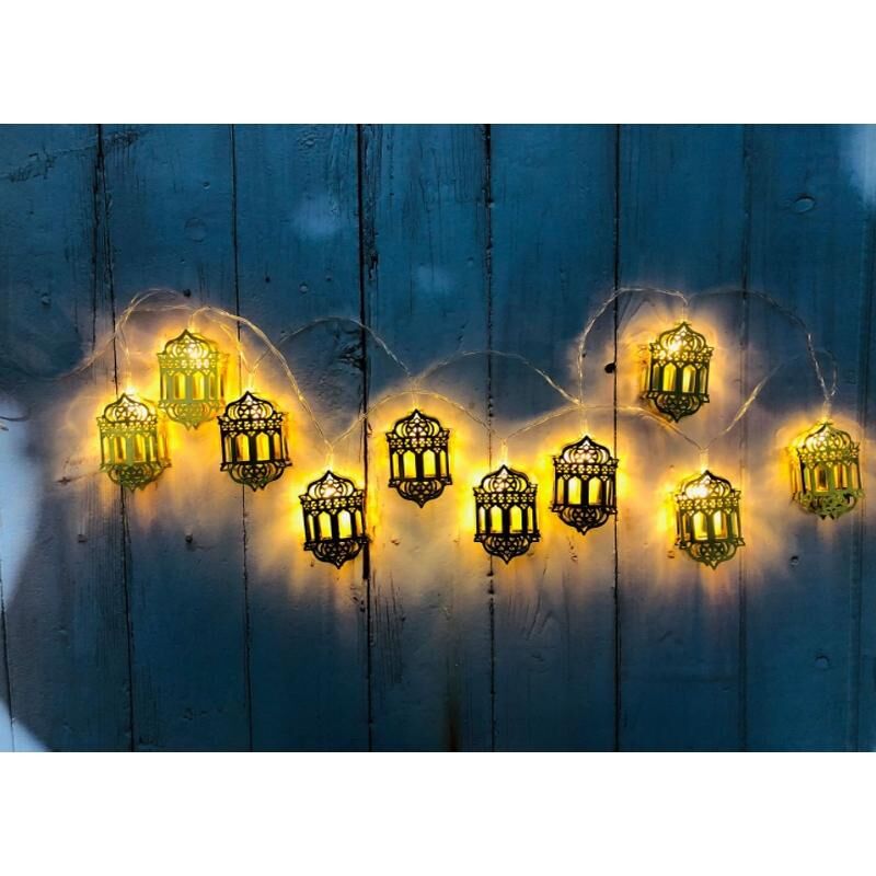 1.65m 10 LEDs Eid Al-Fitr Festival Iron Art String Lights Ramadan LED Decoration Pendant(White Light)
