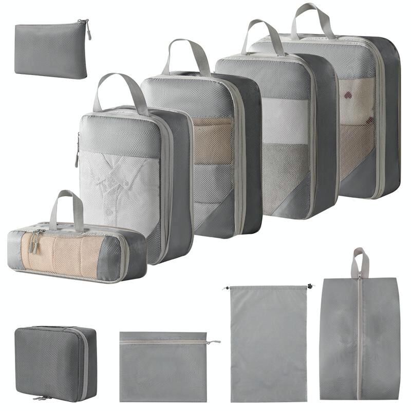 10 In 1 Mesh Compressed Travel Organizer Bag Luggage Clothes Shoes Toiletries Storage Bag(Beige)