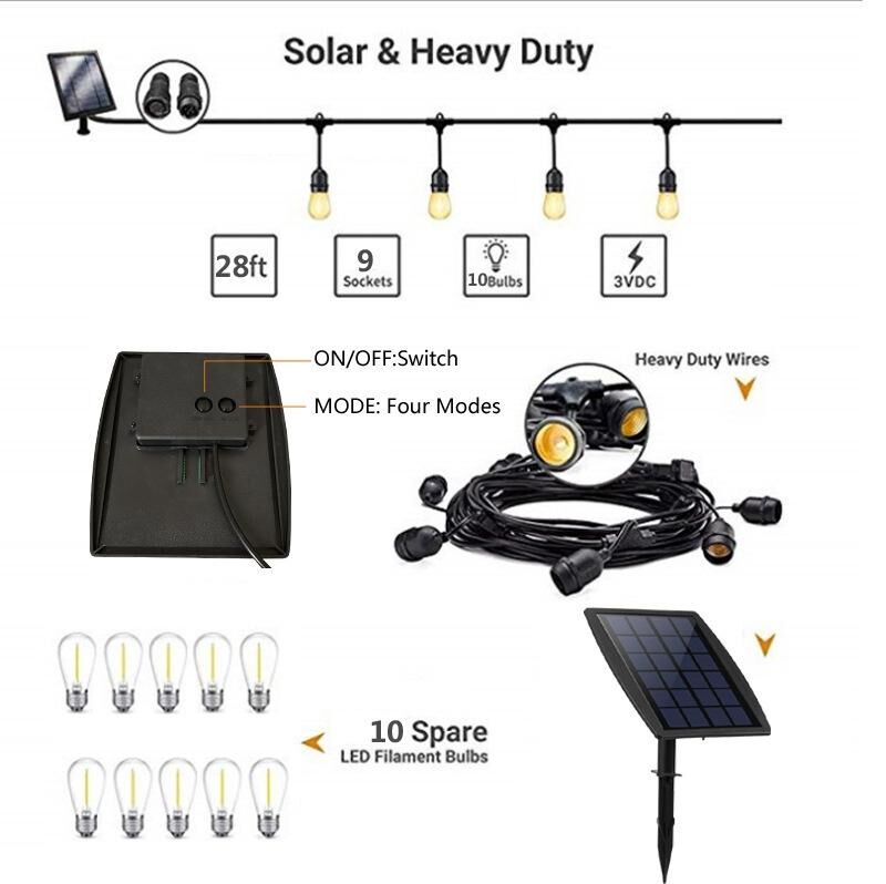 9. Χάντρες λάμπας: 10xE27 S14 1W ζεστή κίτρινη λάμπα φωτός