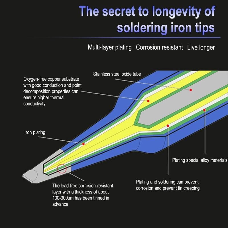 - This can reduce the oxidation chance of the welding head and make the welded iron head more durable. After use, the new tin layer should be coated only after the humidity of the solder iron is slightly reduced, and the right-to-use tin plating layer can achieve better anti-oxidation effect.