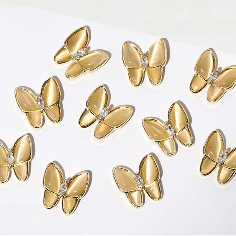 10 ΤΕΜ. Διακοσμητικά Νυχιών Πεταλούδα, Χρυσές Τρισδιάστατες Πεταλούδες Cat's Eye με Ζιργκόν, DIY Αξεσουάρ Διακόσμησης Νυχιών (Χρυσό 1 13X12 MM)
