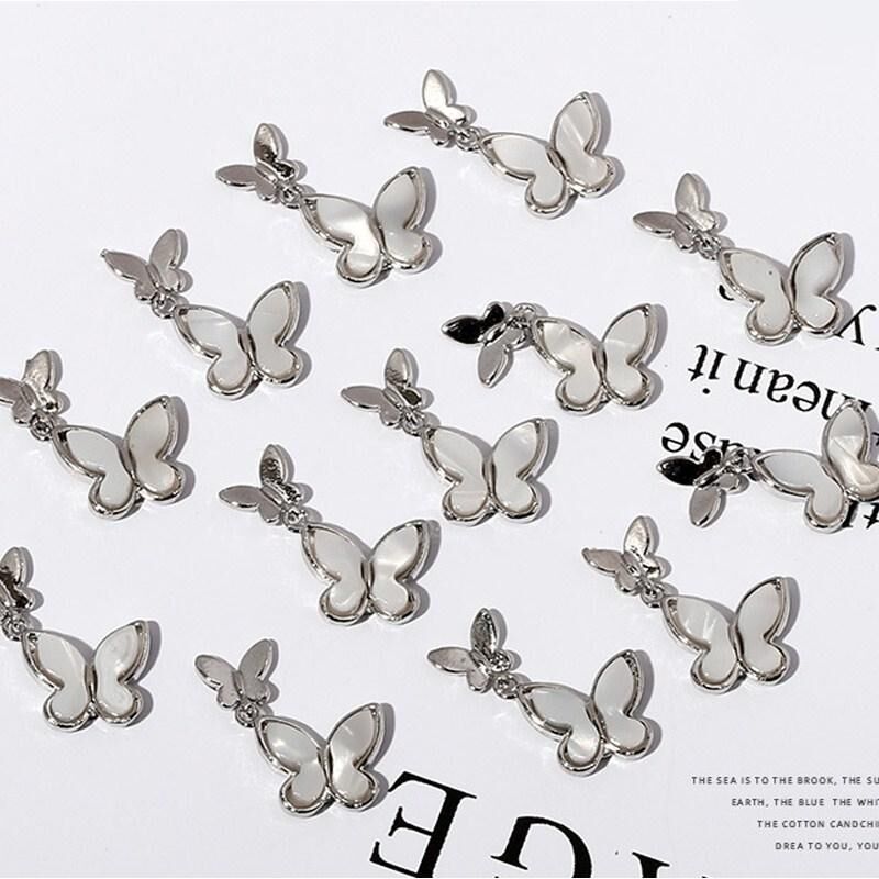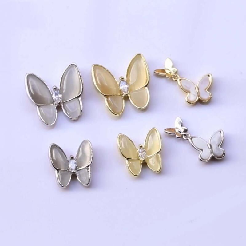10 ΤΕΜ. Διακοσμητικά Νυχιών Πεταλούδα, Χρυσές Τρισδιάστατες Πεταλούδες Cat's Eye με Ζιργκόν, DIY Αξεσουάρ Διακόσμησης Νυχιών (Χρυσό 1 13X12 MM)