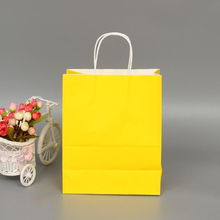 10 ΤΕΜ. Κομψές Χάρτινες Σακούλες Κραφτ με Χερούλια για Γάμο/Γενέθλια/Κοσμήματα/Ρούχα, Μέγεθος: 16x22x8cm (Κίτρινο)