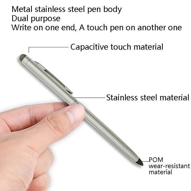 4. Μεταλλικό σώμα στυλό από ανοξείδωτο ατσάλι, διπλής χρήσης για μία γραφή, μία άκρη για γραφή και μία άκρη για πενάκι αφής
