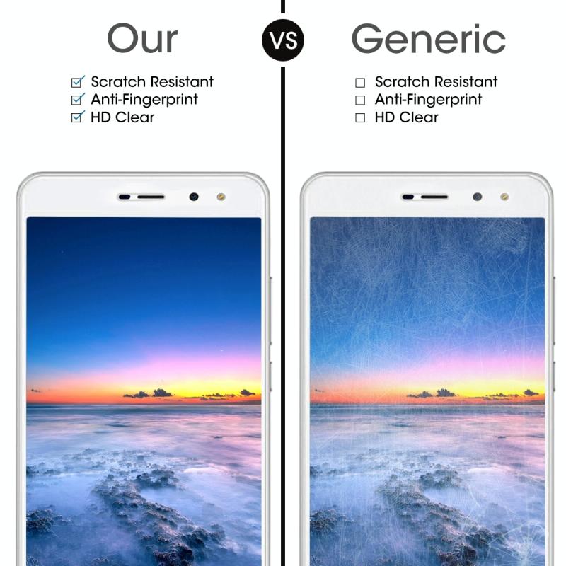 4. Functional. The screen protector can fit your phone well and make a big difference on protecting your phone from scratch, fingerprint, water, oil, dust, shock, slip and so on.When stained with water, soil, mud, oil or other attachments, it can be cleaned without effort.