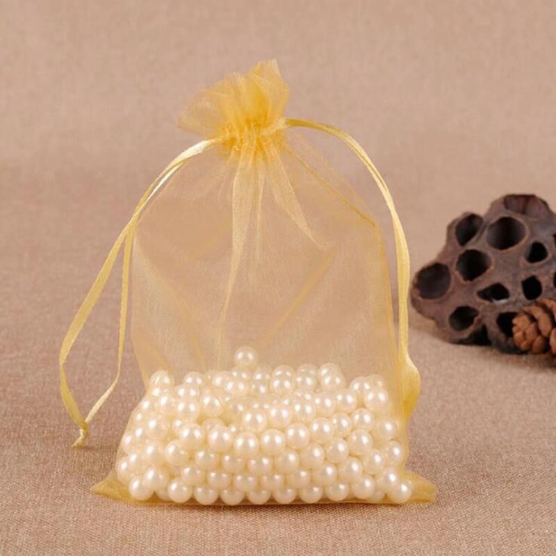 100 Τεμ. Τσάντες Δώρων, Οργανζέ Τσάντες Κοσμημάτων, Τσάντες με Σχοινάκι για Γάμο, Γενέθλια, Παρασκευές, Μέγεθος Τσάντας Δώρου: 20x30cm (Χρυσός)