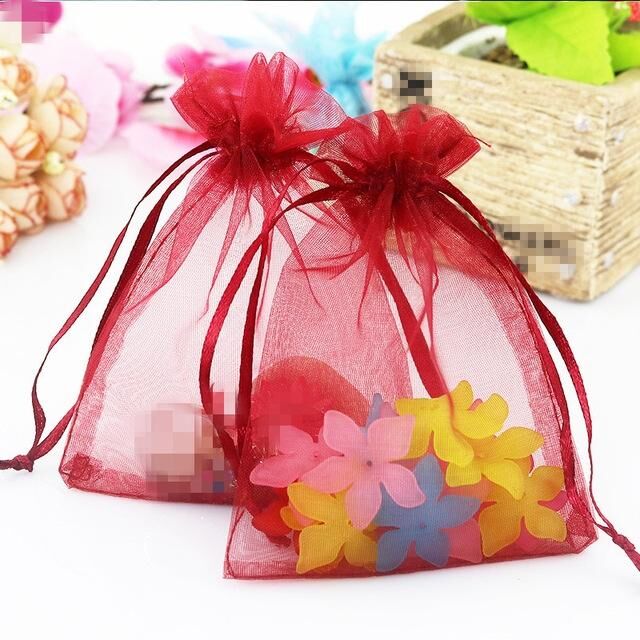 100 PCS Organza Gift Bags Jewelry Packaging Bag Wedding Party Decoration, Size: 7x9cm(D7 Wine Red)