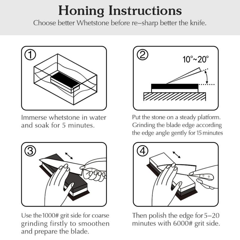 6. Instructions for use: Soak the stone in water for 5-15 minutes, then place it on a stable platform. The method of sharpening with one or two steps depends on the degree of blunt tools