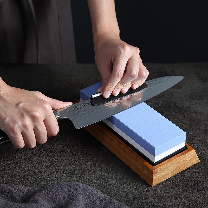 Step 1: Coarse grinding, used to repair severely aged dam edges, suitable for blunt knives. Hold the knife at an angle of 10-30 degree, grind the edges back and forth on the stone surface with slight pressure, and sharpen until the edges are sharp enough. After sharpening the tool, rough grinding is required after six months. Also depends on the situation