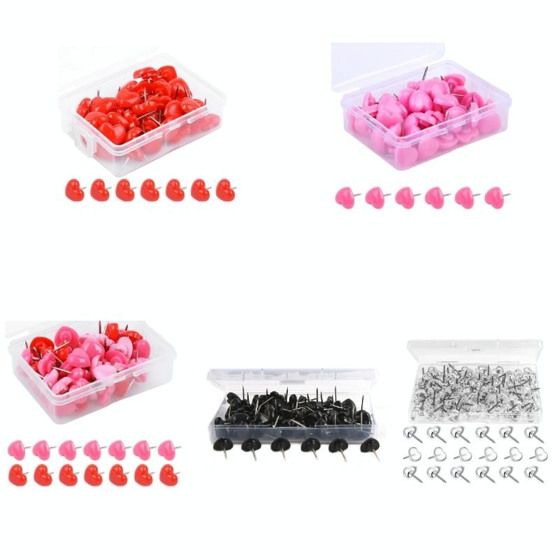 100pcs / κουτί 7.9x5.8x3cm αγάπη πλαστικά καρφιά DIY γραφείο σχολείο πολύχρωμες καρφίτσες (μαύρο)
