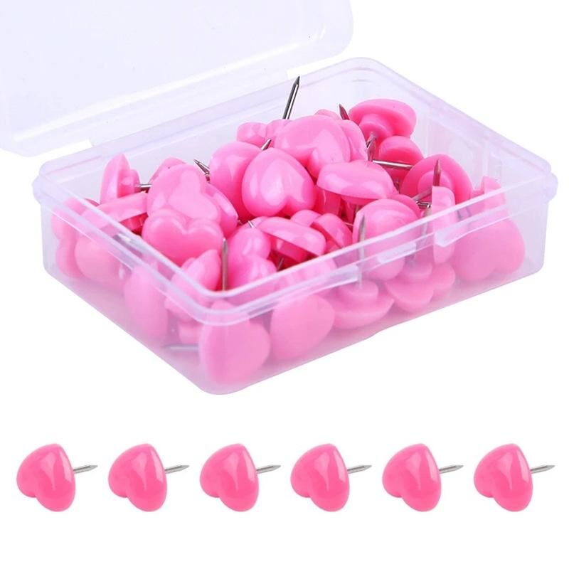100pcs / κουτί 7.9x5.8x3cm αγάπη πλαστικά καρφιά DIY γραφείο σχολείο πολύχρωμες καρφίτσες (ροζ)