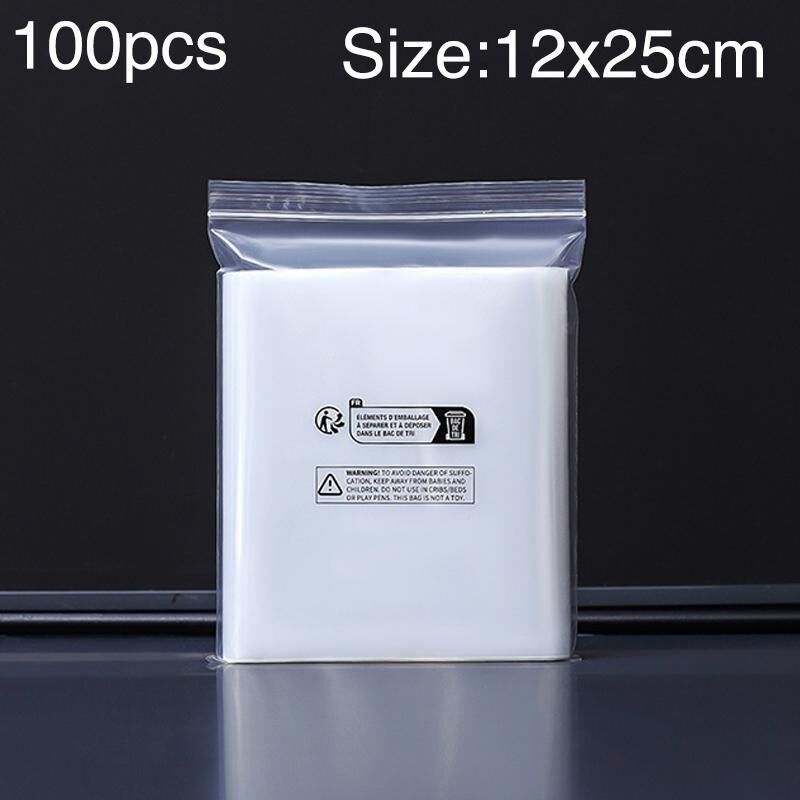 100pcs Double Layer Environmental Label Warning Printed Ziplock Bag, Size:12 x 25cm 10 Wire