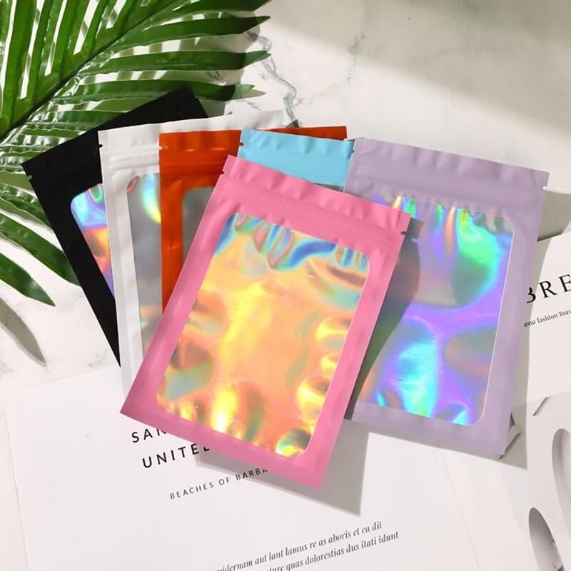 100pcs λέιζερ σκιασμένο αυτο-σφραγίζοντας τσάντα κοσμήματα κλείσιμο τσάντες συσκευασίας, μέγεθος: 7 x 10cm πορτοκαλί