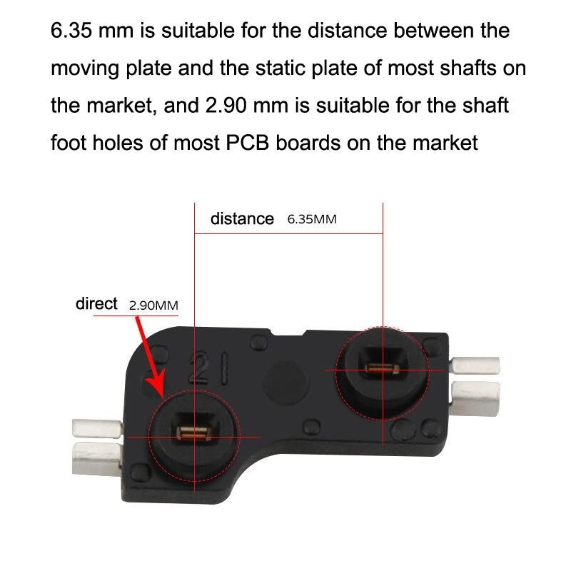 3. 6.35 mm is suitable for the distance between the moving plate and the static plate of most shafts on the market, and 2.90 mm is suitable for the shaft foot holes of most PCB boards on the market