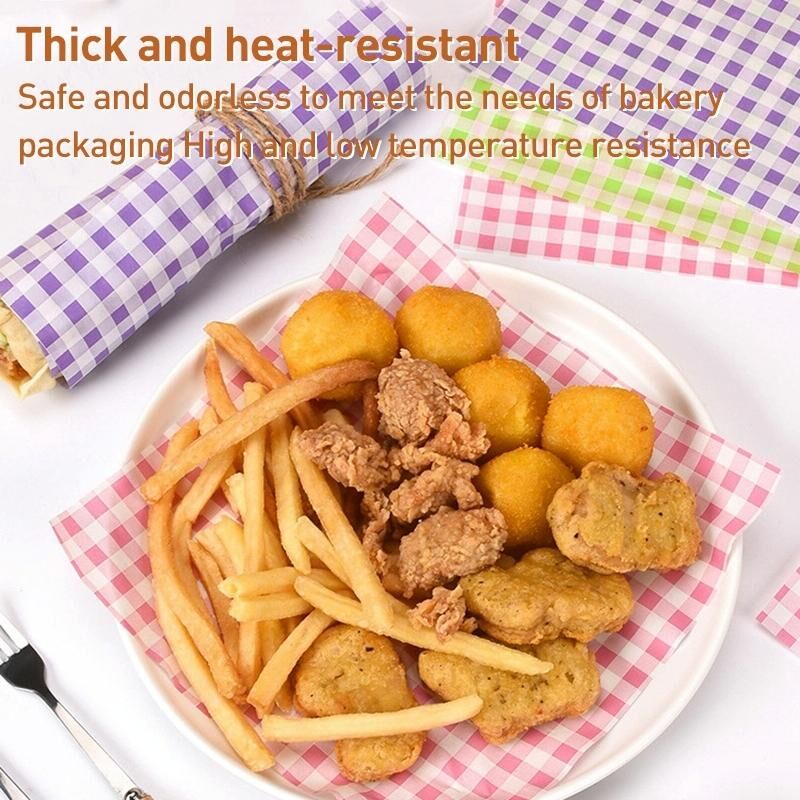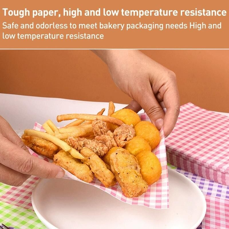 100 φύλλα / Πακέτο Τετράγωνο Αντιλιπαρό Χαρτί Ψησίματος, Επένδυση για Μπέργκερ και Σάντουιτς, μέγεθος: 22x22cm (Ροζ)