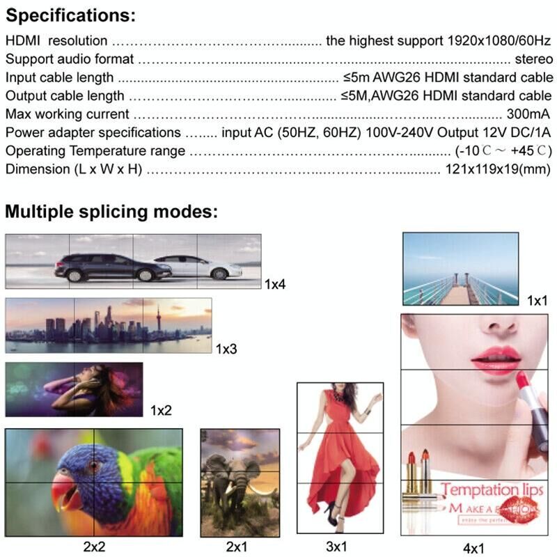 7. Support 2x2/1x2/2x1 splicing, easy to operate, plug and play