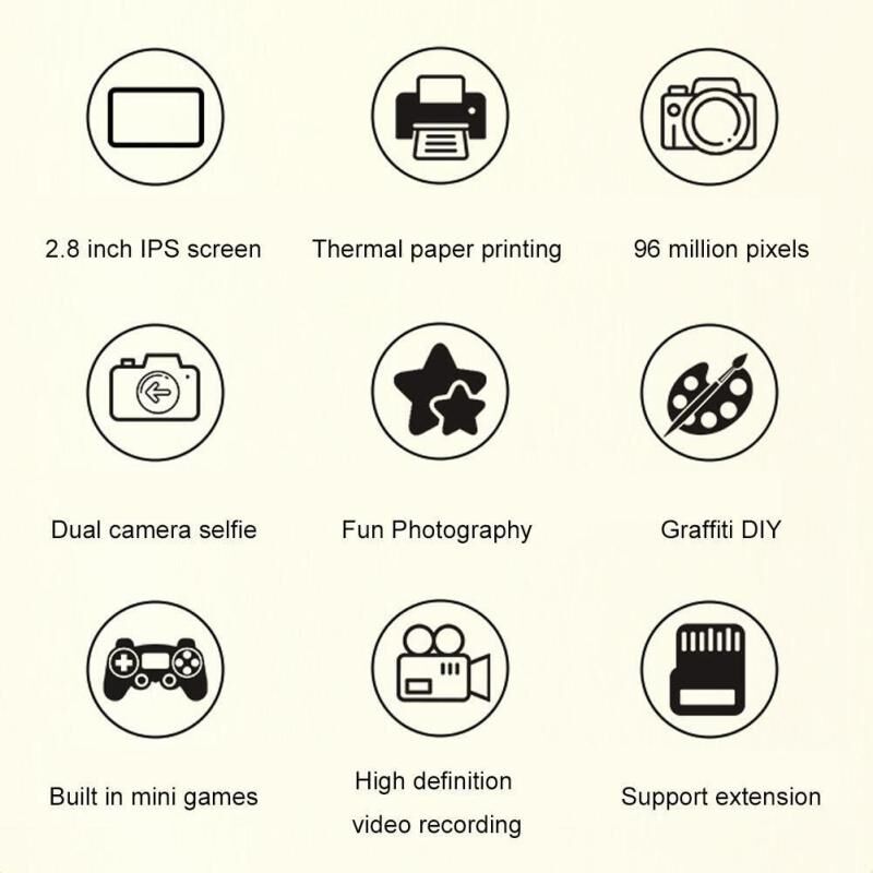 1. Λειτουργίες: λήψη φωτογραφιών (Selfie, χρονοκαθυστέρηση), εκτύπωση, εγγραφή βίντεο, αναπαραγωγή, παιχνίδια, αυτοκόλλητα φωτογραφιών
