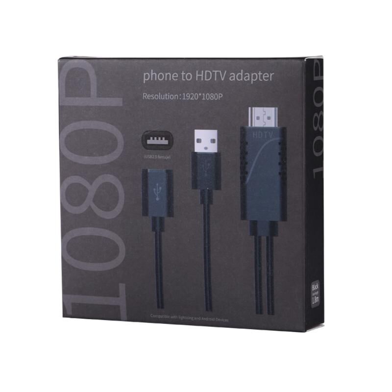 2. Easy to use. Plug the HDMI output to your HDMI-Enabled devices like HDTV/ projector,and connect the USB type-A port with an external (5V / 1A) adapter to supply power, then connect the lightning plug with your phones or tablets.