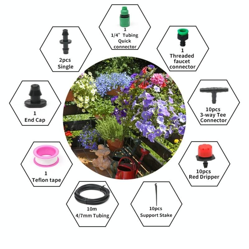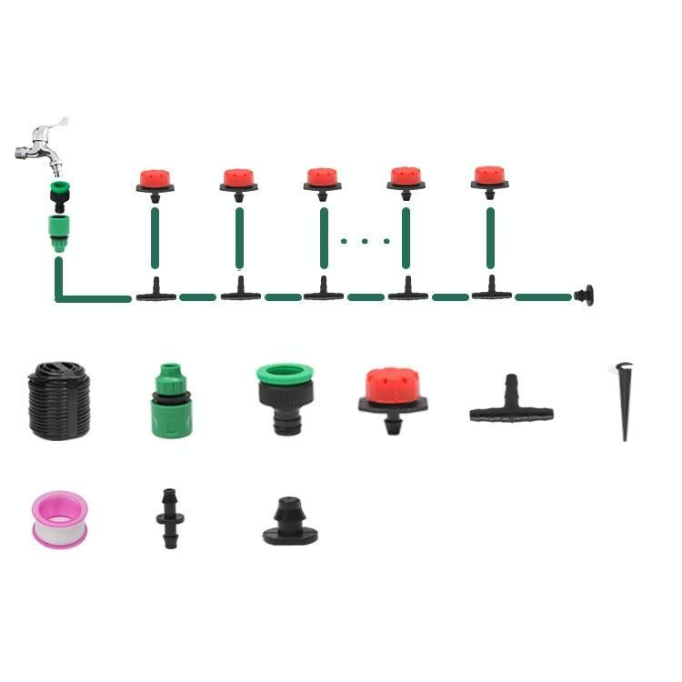 10m κιτ σωλήνα στάγδην σύστημα άρδευσης φυτών ποτίσματος Set 360 μοίρες ρυθμιζόμενες σταγόνες