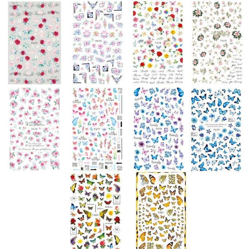 10 τεμ 3D Αυτοκόλλητα Νυχιών με Πεταλούδες και Ρετρό Χρώματα Τριαντάφυλλου (F-678)