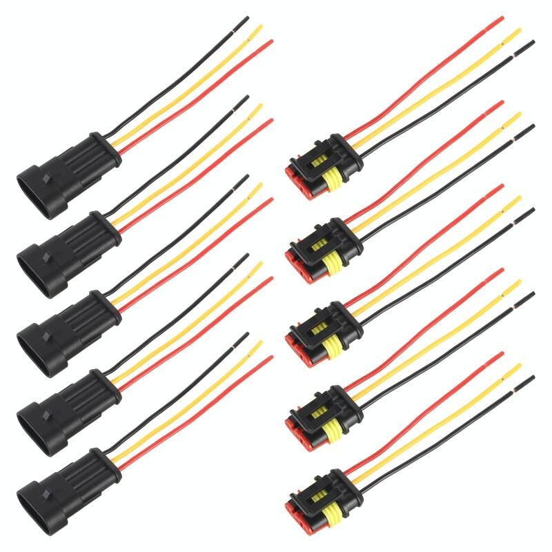 10pcs 3P Car Waterproof Plug Car Connector Plug-In, Length:10cm