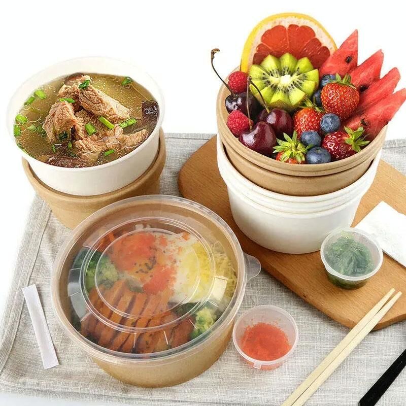 1. Στρογγυλό χάρτινο μπολ, παχυσμένο για να αντιστέκεται στην πίεση, ενσωματωμένη πλαστικοποίηση, αδιάβροχο και ανθεκτικό στο λάδι, δεν είναι εύκολο να διεισδύσει