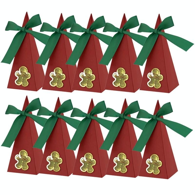 10 τεμ. Χριστουγεννιάτικες Κουτίες Ζαχαρωτών Τριγωνικό Σχήμα για Πάρτι Πρωτοχρονιάς, Χριστουγεννιάτικο Δώρο, Συσκευασία από Χαρτί, Στυλ: Ανθρωπάκι με τζίντζερ.