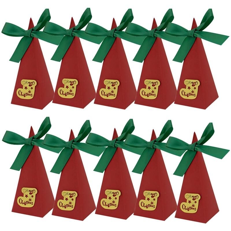 10 τεμ. Χριστουγεννιάτικες Κουτιέρες Ζαχαρωτών Τριγωνικές για Πρωτοχρονιάτικο Πάρτι, Χριστουγεννιάτικα Δώρα, Συσκευασία από Χαρτί, Στυλ: Κάλτσες