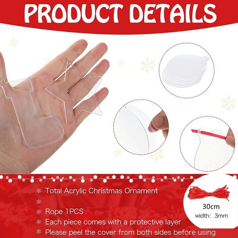 6. Μέγεθος: κουδούνι/δέντρο/στρογγυλό/σπίτι περίπου 7 x 8cm, κουτί δώρου περίπου 6.9 x 8.9cm, χιονάνθρωπος περίπου 6.3 x 8.9cm, καπέλο περίπου 6.9 x 8.4cm, τριγωνικό στρογγυλό περίπου 7.5 x 9.3cm, νιφάδα χιονιού περίπου 8.2 x 8.2cm, πάχος περίπου 0.2cm, μήκος κόκκινης κορδέλας περίπου 30cm x 10 τεμ